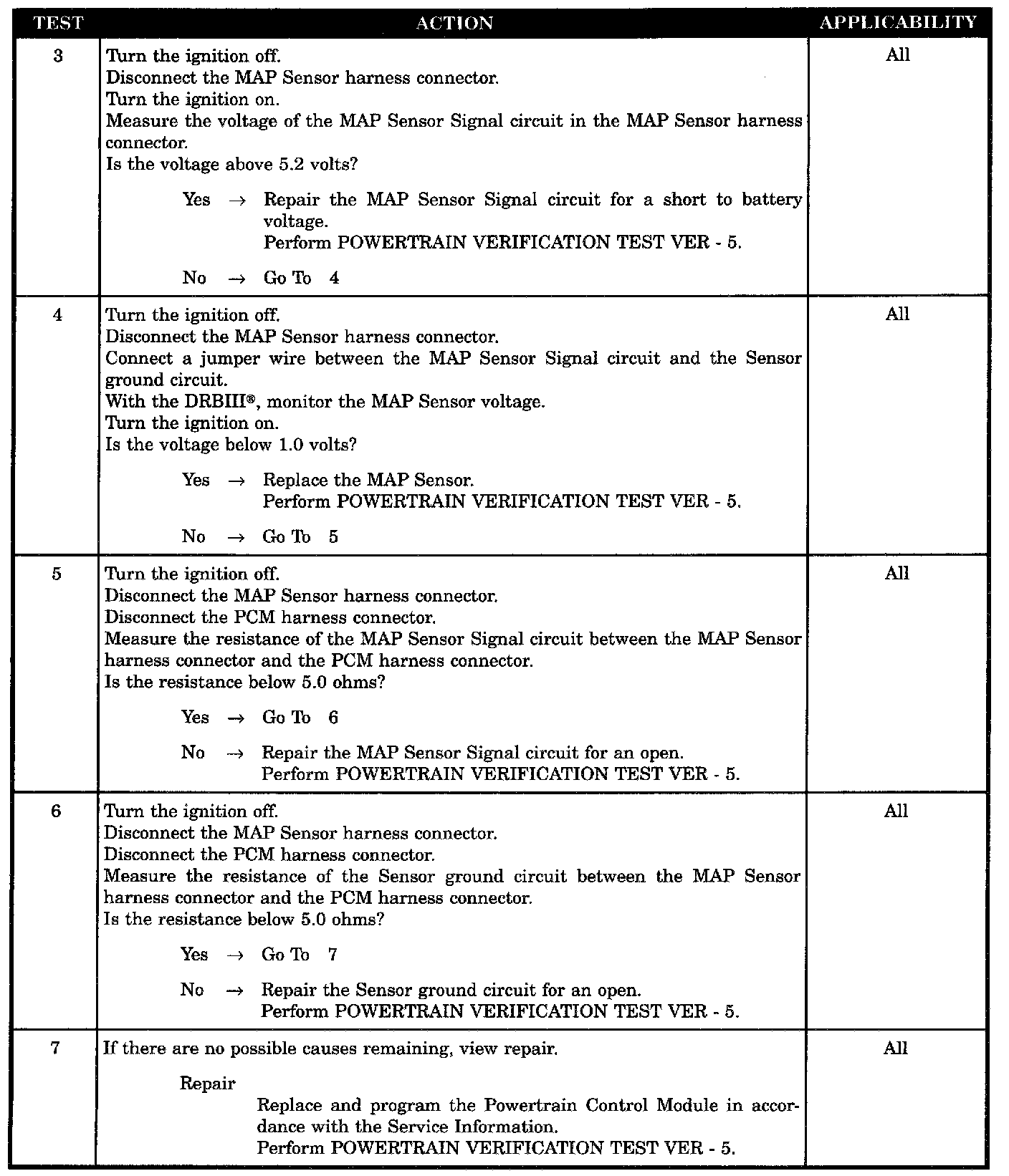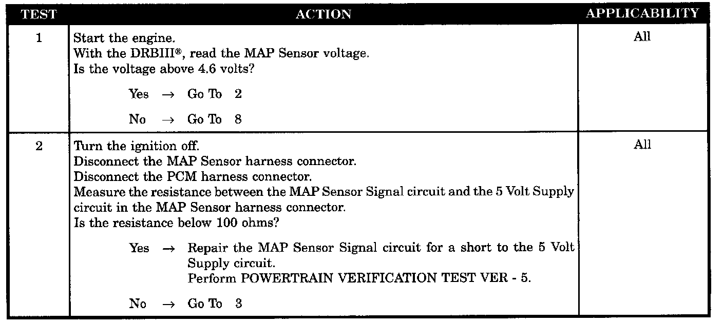 - MAP sensor signal circuit shorted to 5 volt supply circuit