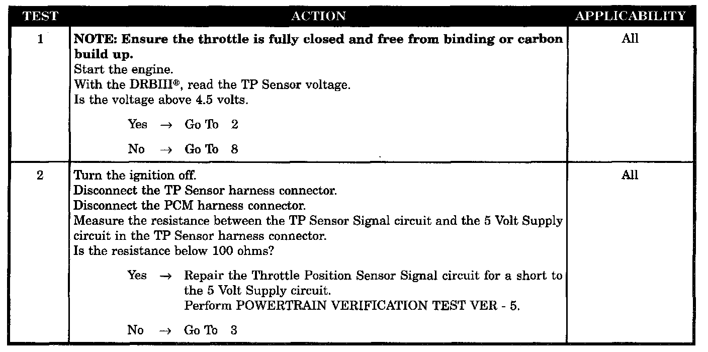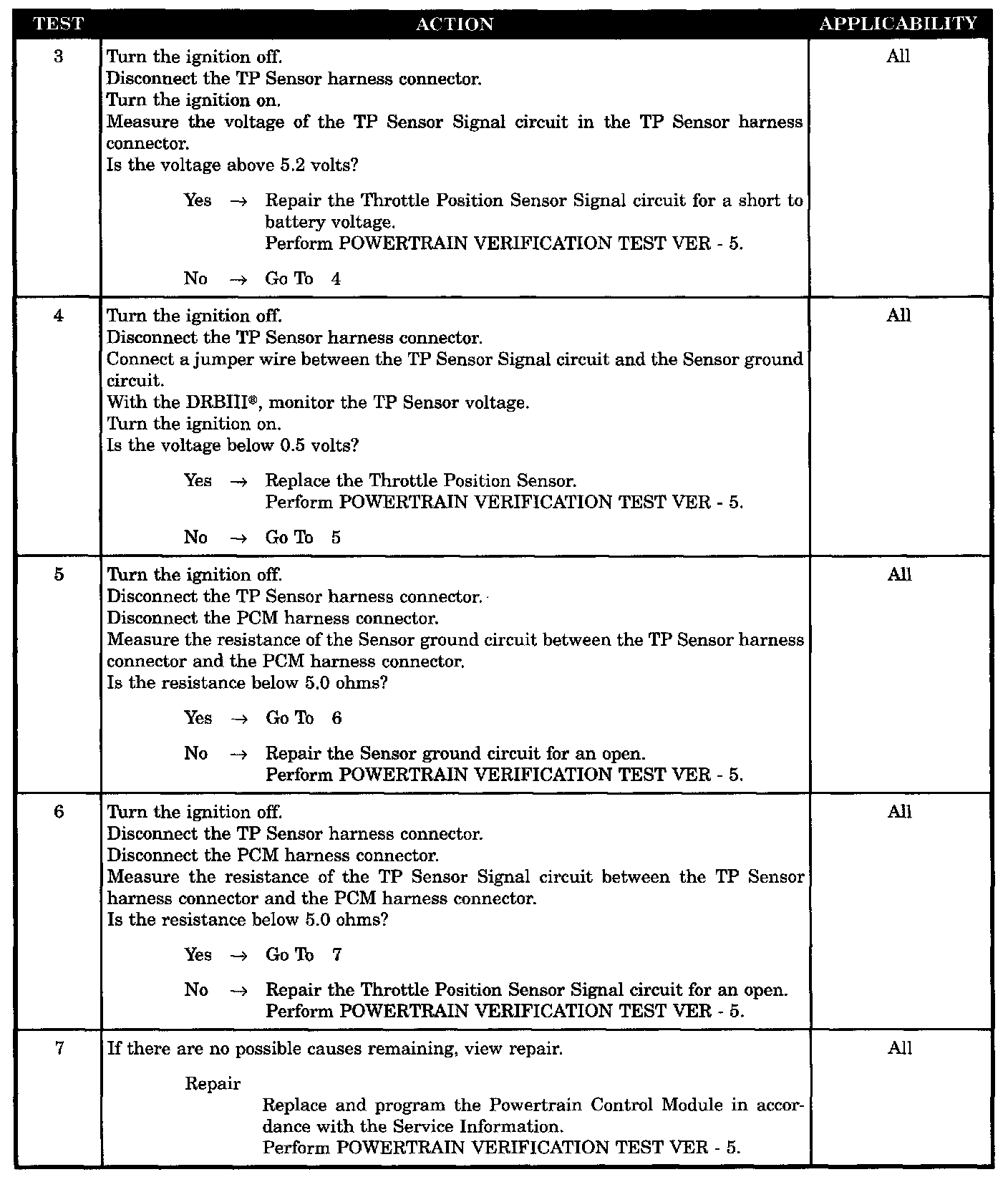 - TP sensor signal circuit shorted to 5 volt supply circuit