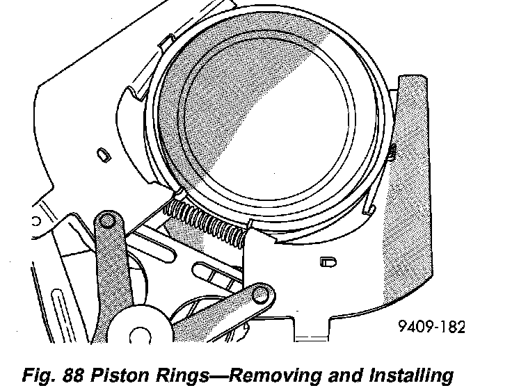 REMOVAL1. Using a suitable ring expander, remove upper and intermediate piston rings (Fig. 88).