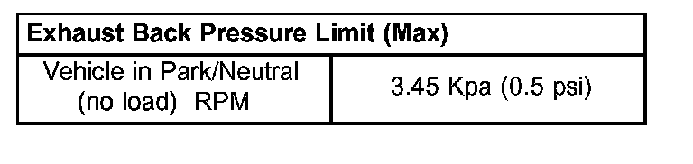 7. If pressure exceeds maximum limits, inspect exhaust system for restricted component. Replace component(s) as necessary.