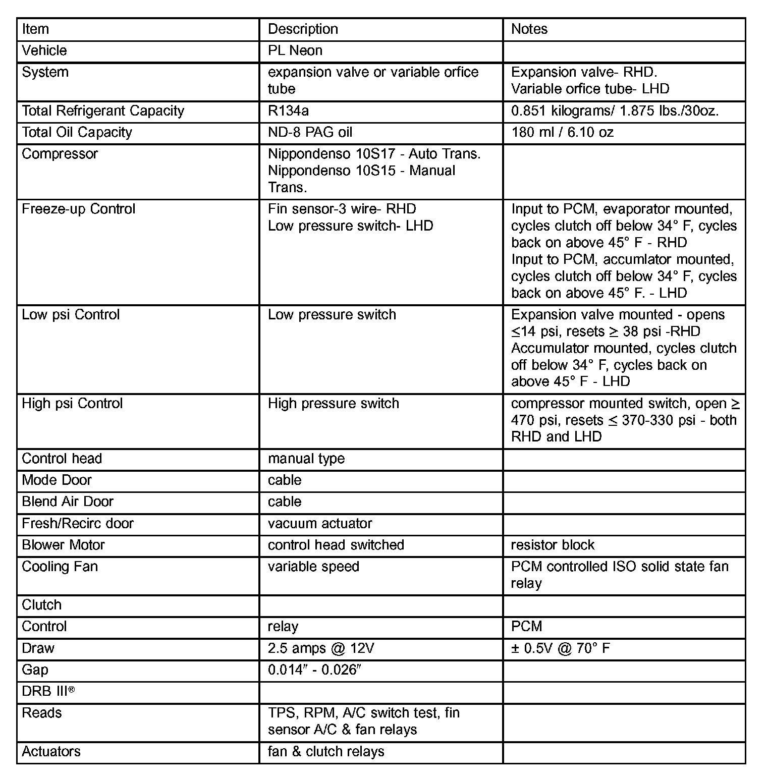 Neon R/T L4-2.0L VIN F HO