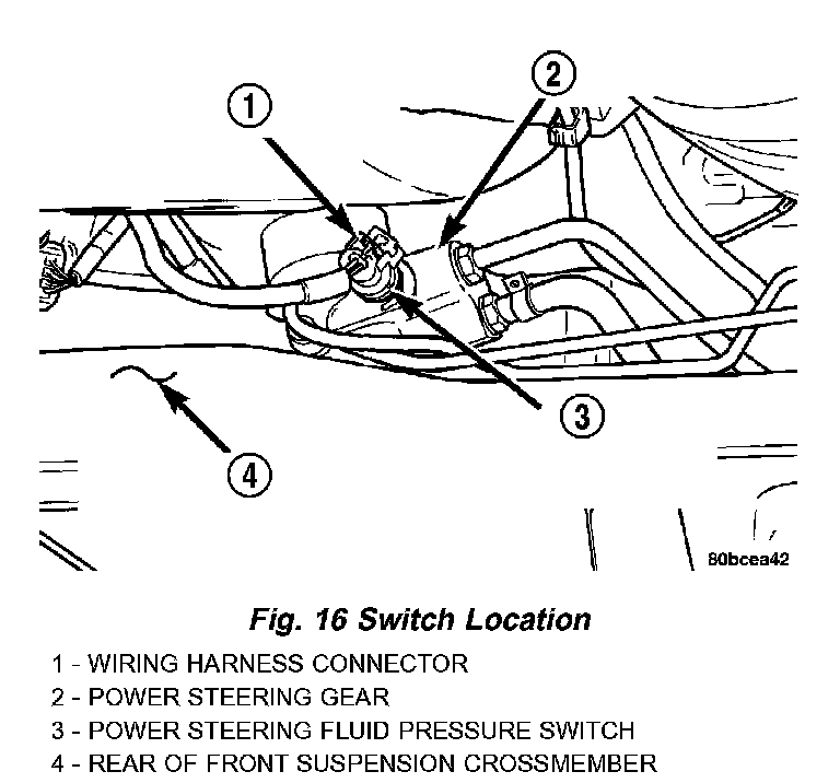 3. Locate the power steering fluid pressure switch on the back side of the power steering gear.