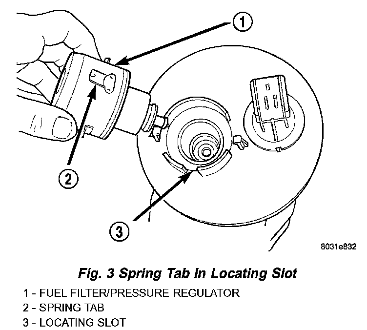 4. Depress locking spring tab on side of Fuel/Regulator (Fig. 2) and rotate 90° counter-clockwise and pull out.