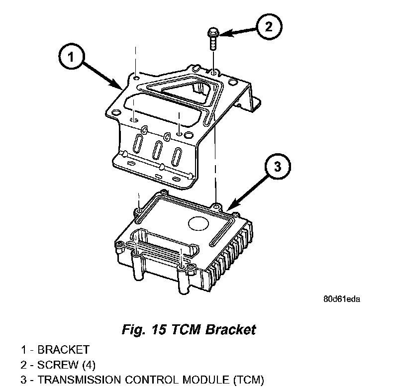 6. Remove four (4) bracket-to-TCM screws and remove bracket (Fig. 15).