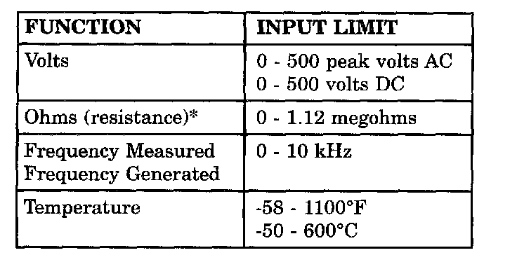 * Ohms cannot be measured if voltage is present. Ohms can be measured only in a non-powered circuit.