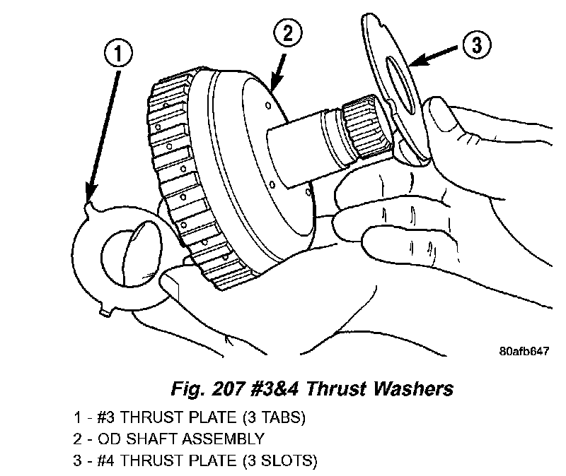 10. Remove and inspect # 3 & # 4 thrust washers (Fig. 207).