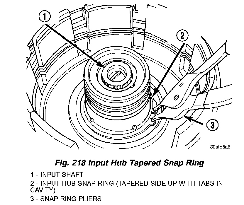 21. Remove input hub tapered snap ring (Fig. 218).