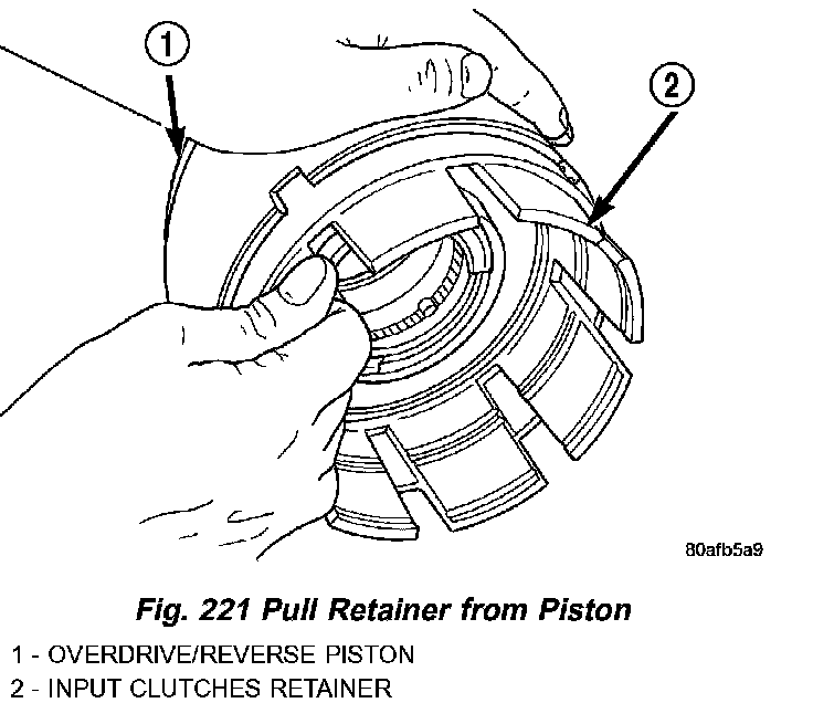 23. Separate clutch retainer from OD/Reverse piston (Fig. 221).