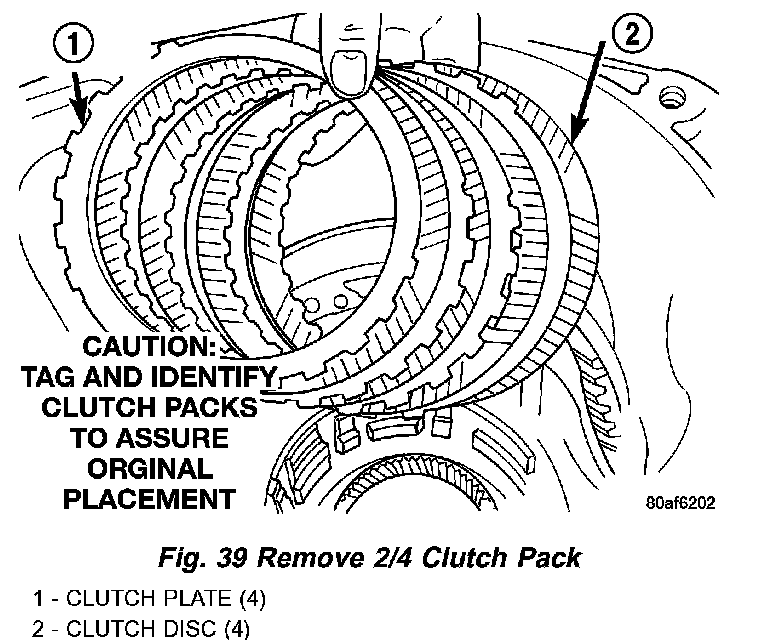 30. Remove 2/4 clutch pack (Fig. 39). Tag 2/4 clutch pack for reassembly identification.