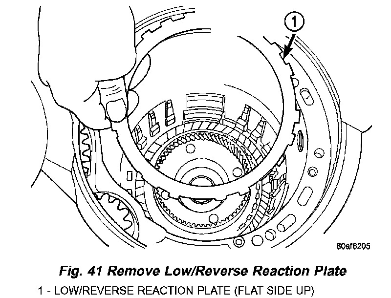 32. Remove low/reverse reaction plate (Fig. 41).