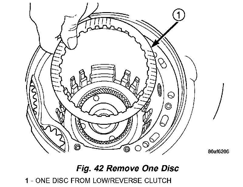 33. Remove one low/reverse clutch disc (Fig. 42).