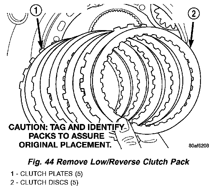 35. Remove low/reverse clutch pack (Fig. 44).