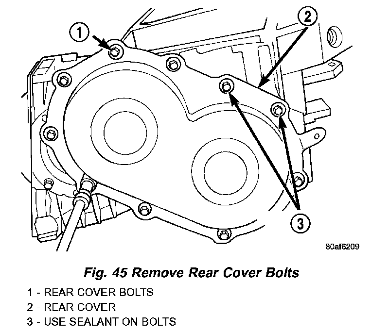 36. Remove transfer gear cover-to-case bolts (Fig. 45).