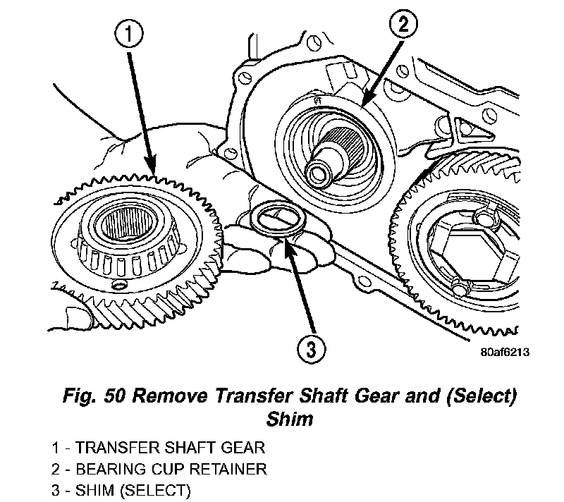 40. Remove transfer gear shim (select) (Fig. 50).