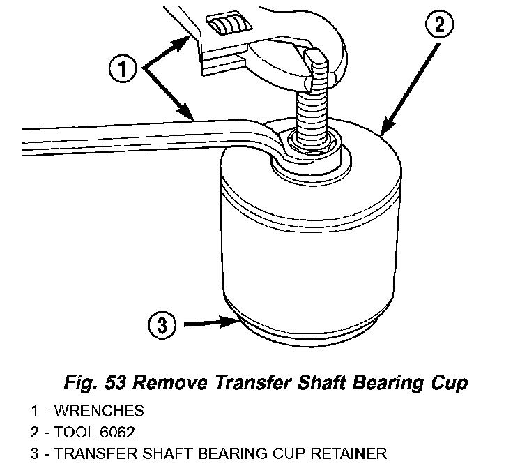 43. Remove transfer shaft bearing cup from retainer using Tool 6062 (Fig. 53).