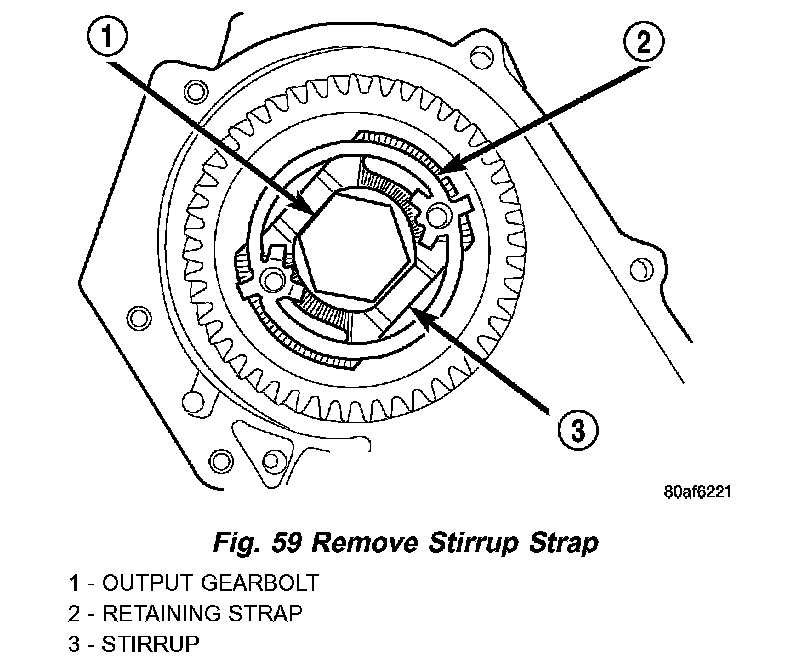 49. Remove output shaft stirrup strap bolts (Fig. 58).