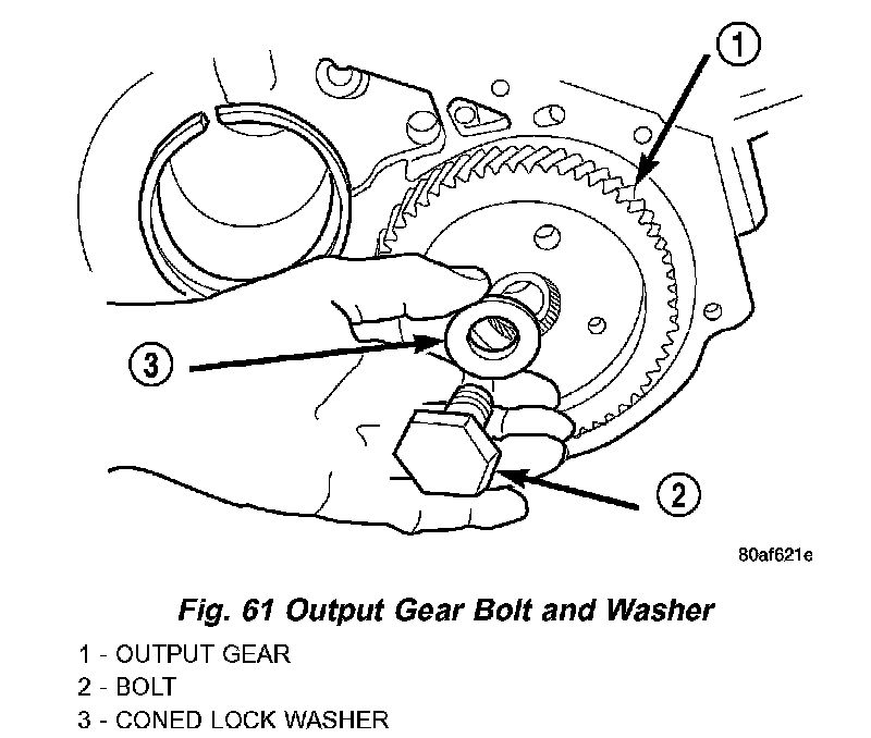 48. Bend output gear retaining strap ears flat to allow bolt removal.