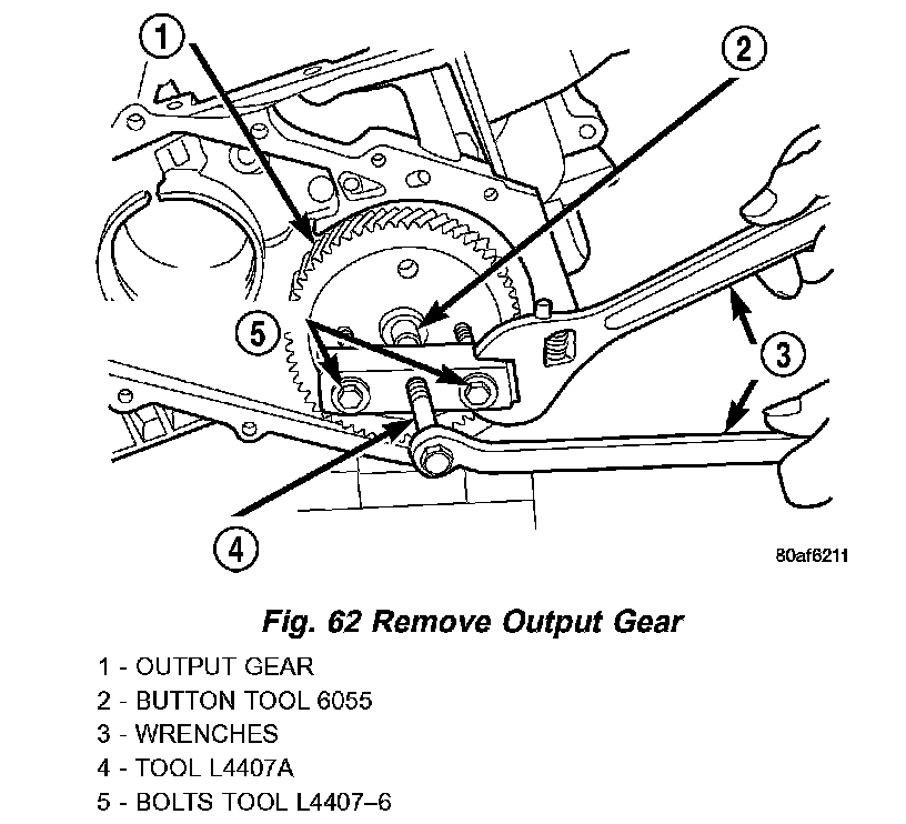 52. Using Tool L4407A, and button 6055, remove output gear from shaft (Fig. 62).