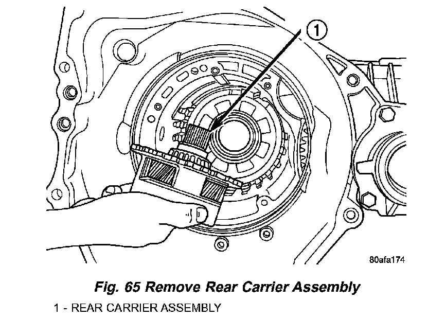 55. Remove rear carrier assembly from transaxle (Fig. 65).