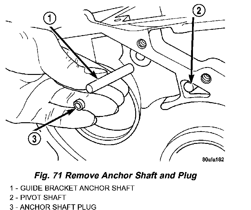 60. Using a suitable punch, drive out park guide bracket pivot shaft plug (Fig. 71).