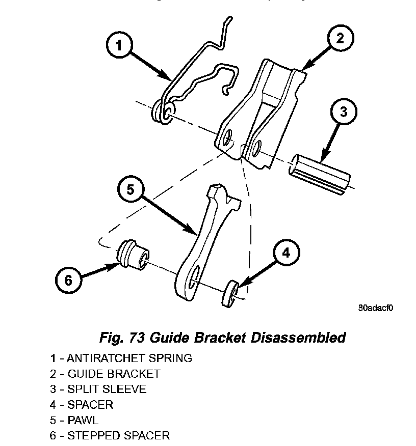 62. Inspect guide bracket components for excessive wear and replace if necessary (Fig. 73).
