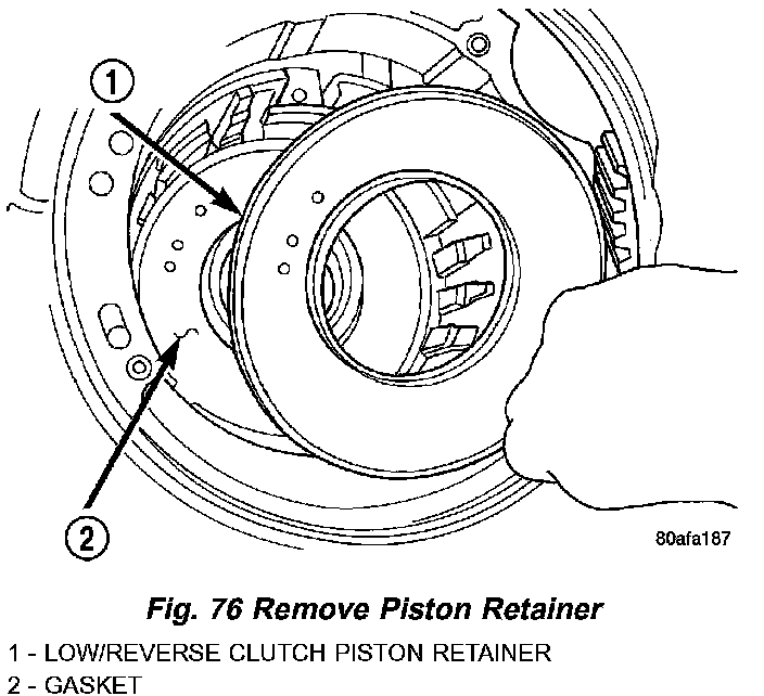 65. Remove low/reverse piston retainer (Fig. 76).