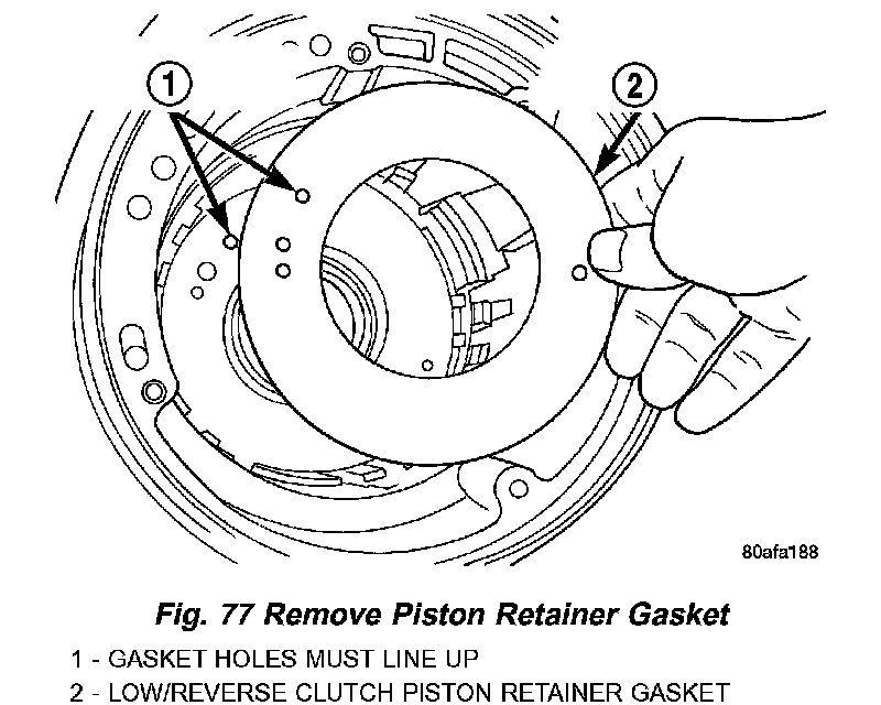 66. Remove low/reverse piston retainer-to-case gasket (Fig. 77).