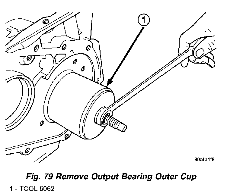 68. Using tool 6062, remove outer output bearing cup (Fig. 79).