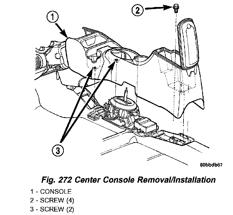 3. Remove the center console assembly as shown in (Fig. 272).