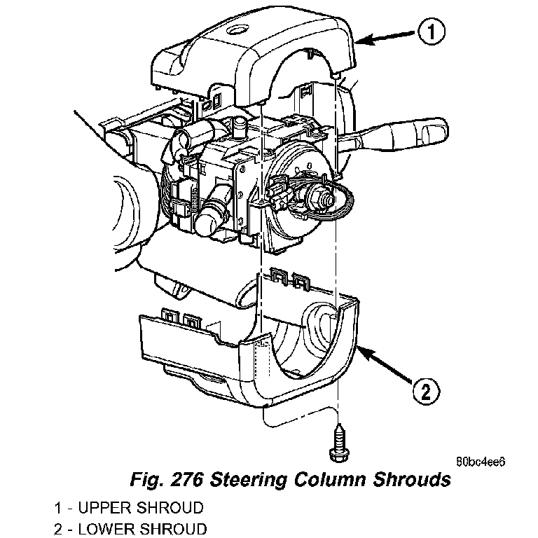 7. Install steering column upper and lower shrouds (Fig. 276).