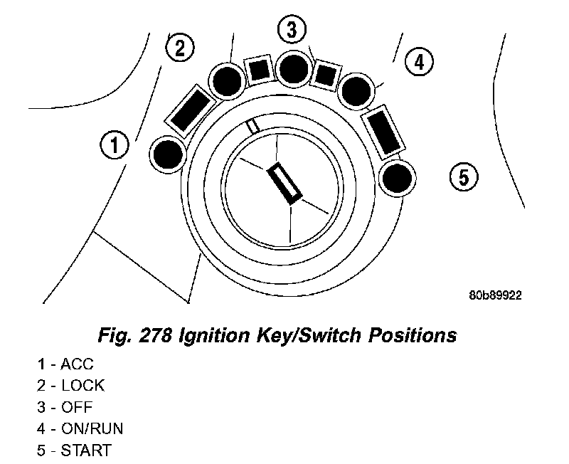 2. Turn the ignition key to the "OFF" or "ON/RUN" position (Fig. 278).