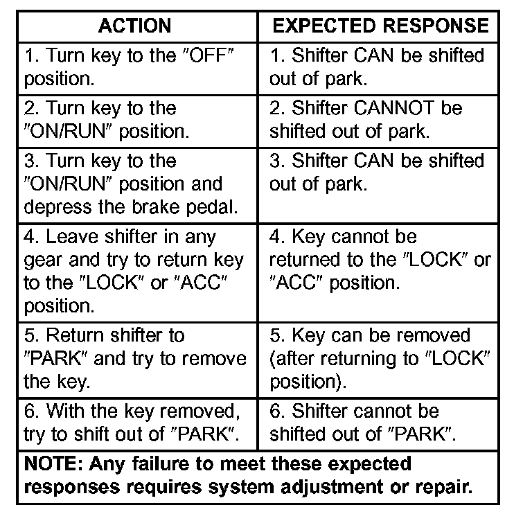 9. Verify that shifter is in gated "PARK".