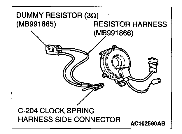 2. Connect the dummy resistor (MB991865) to the resistor harness (MB991866).
