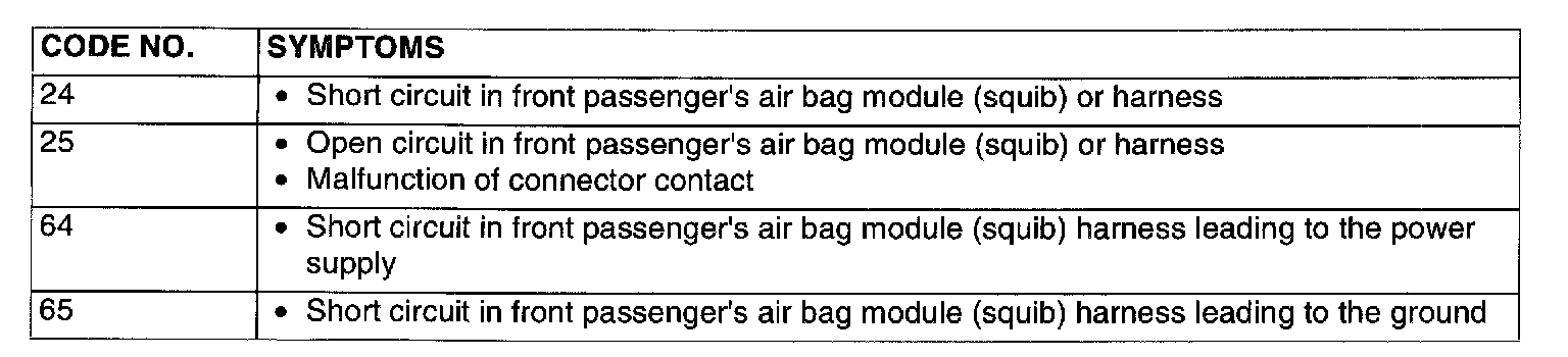- Short circuit between the passenger's air bag module (squib) circuit terminals