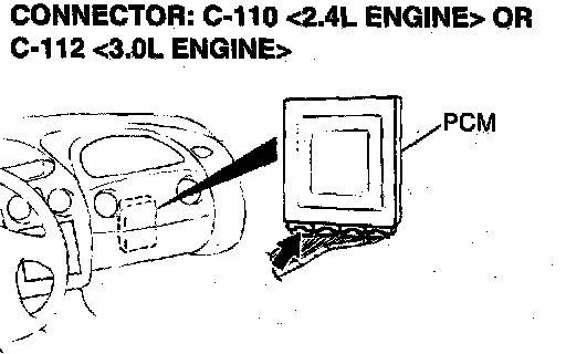 STEP 3. Check connector C-110 <2.4L Engine> or C-112 <3.0L Engine> at PCM for damage.