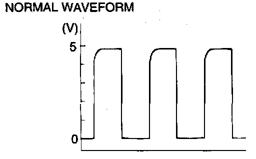 4. Check the waveform. The waveform should show a pattern similar to the illustration. The maximum value should be 4.8 volts and more and the minimum value 0.8 volts and less. The output waveform should not contain electrical noise.