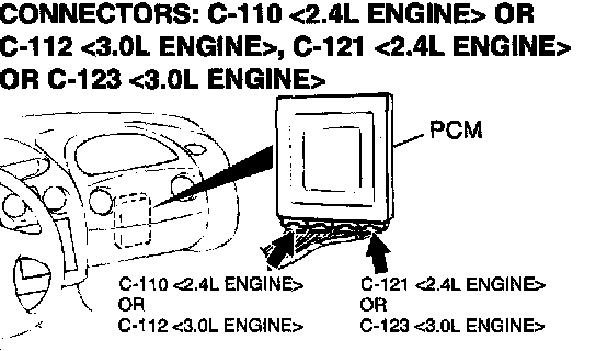 1. Do not disconnect connectors C-110 <2.4L Engine> or C112 <3.0L Engine> and C-121 <2.4L Engine> or C-123 <3.0L Engine>.
