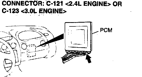 1. Do not disconnect connector C-121 <2.4L Engine> or C123 <3.0L Engine>.