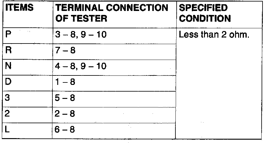 - When selector lever position is "3," voltage should be 0.5 volt or less.