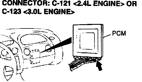STEP 3. Check connector C-121 <2.4L Engine> or C-123 <3.01L Engine> at PCM for damage.