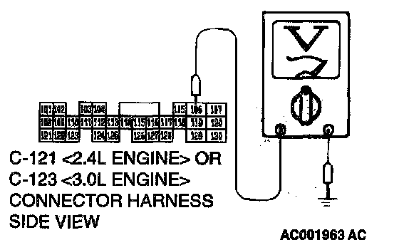3. Measure the voltage between terminal 106 and ground by backprobing.