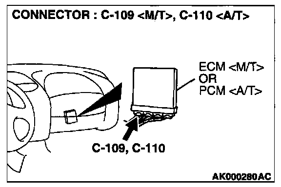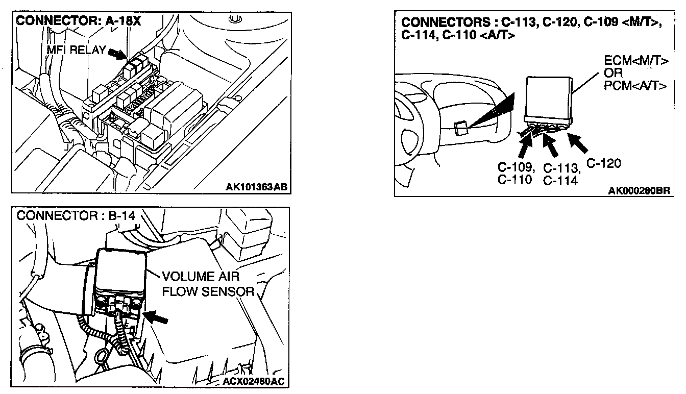 STEP 3. Check connector B-14 at volume air flow sensor and connector C-109 at ECM