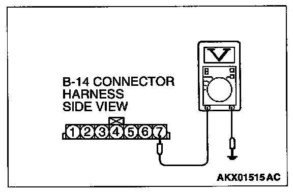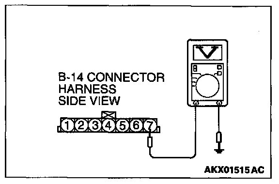 STEP 2. Check the reset signal voltage at volume air flow sensor connector B-14 by backprobing.