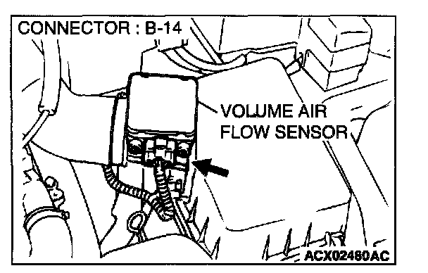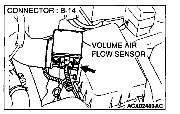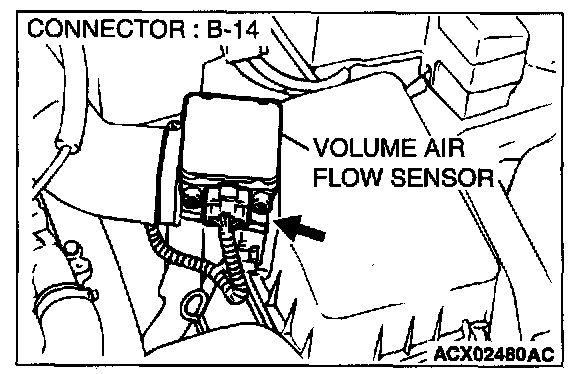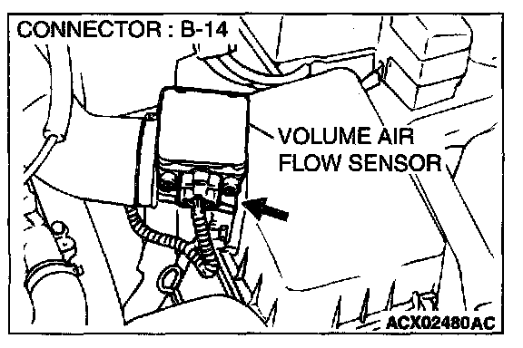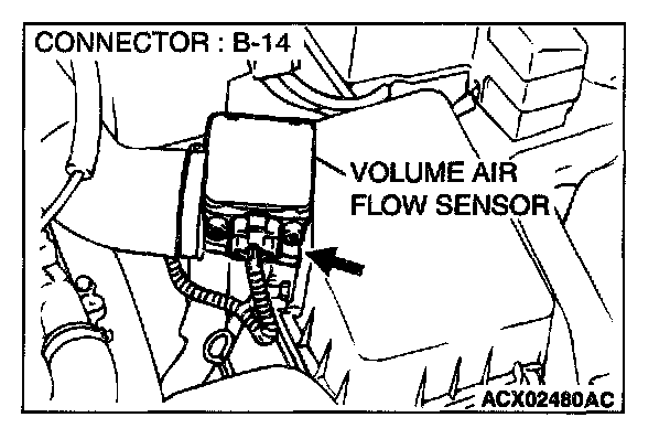 STEP 1. Using scan tool MB991502, check data list item 12: Volume Air Flow Sensor.