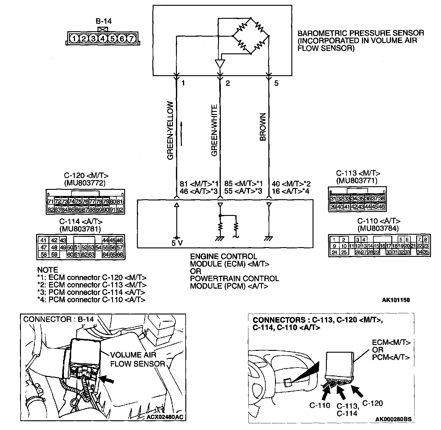 - A 5-volt voltage is supplied to the barometric pressure sensor power terminal (terminal 1) from the ECM (terminal 81)