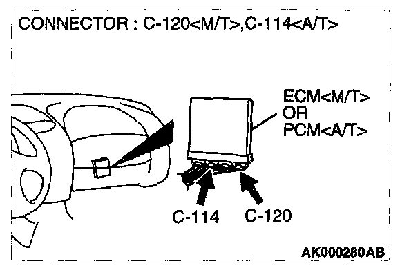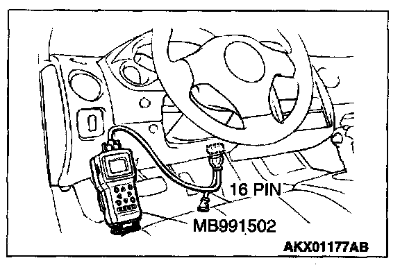 CAUTION: To prevent damage to scan tool MB991502, always turn the ignition switch to the "LOCK" (OFF) position before connecting or disconnecting scan tool MB991502.