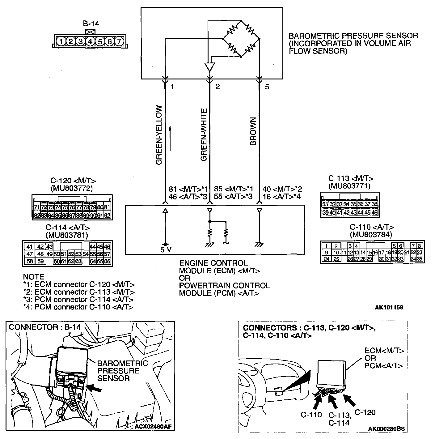 STEP 3. Check connector B-14 at the barometric pressure sensor and connector C-120 at ECM