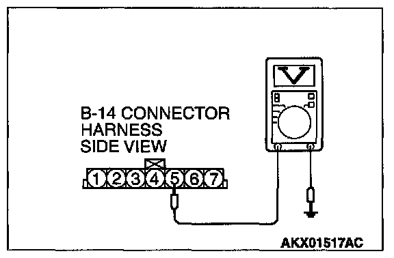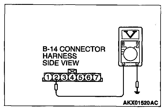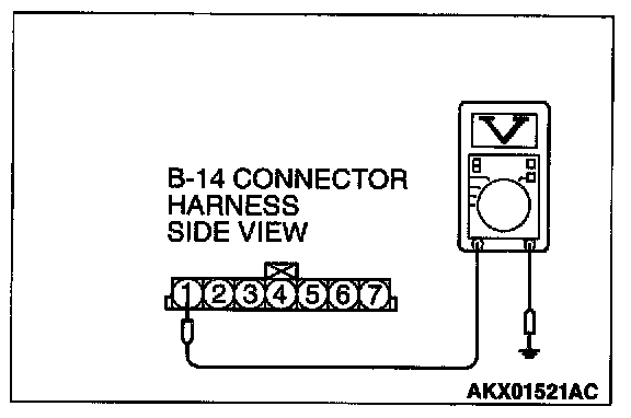 STEP 2. Check the sensor output voltage at barometric pressure sensor connector B-14 by backprobing.