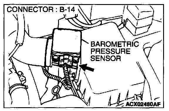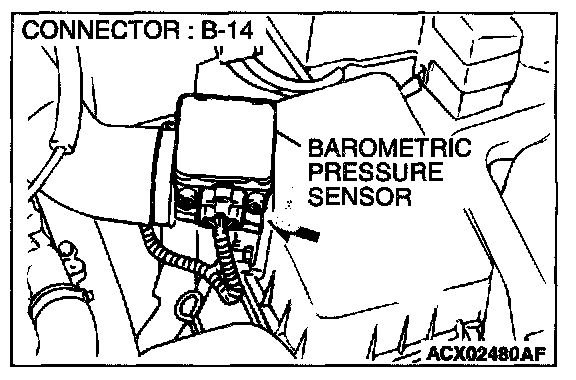 3. Set scan tool MB991502 to the data reading mode for item 25, Barometric Pressure Sensor.
