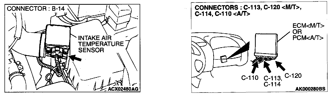 STEP 6. Check for open circuit and harness damage between intake air temperature sensor connector B-14 and ECM connector C-113